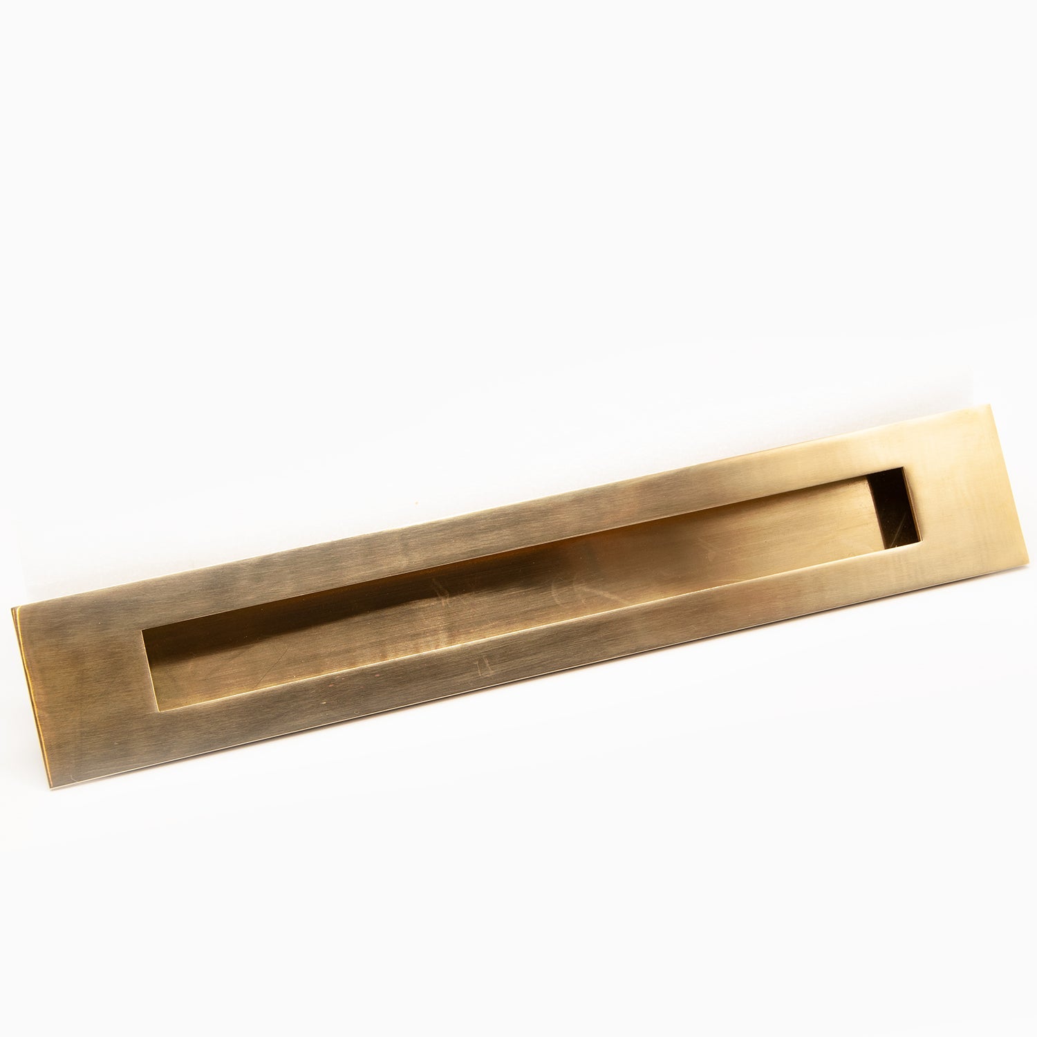 This rectangular flush inset handle is solid brass and finished in your chosen style style.