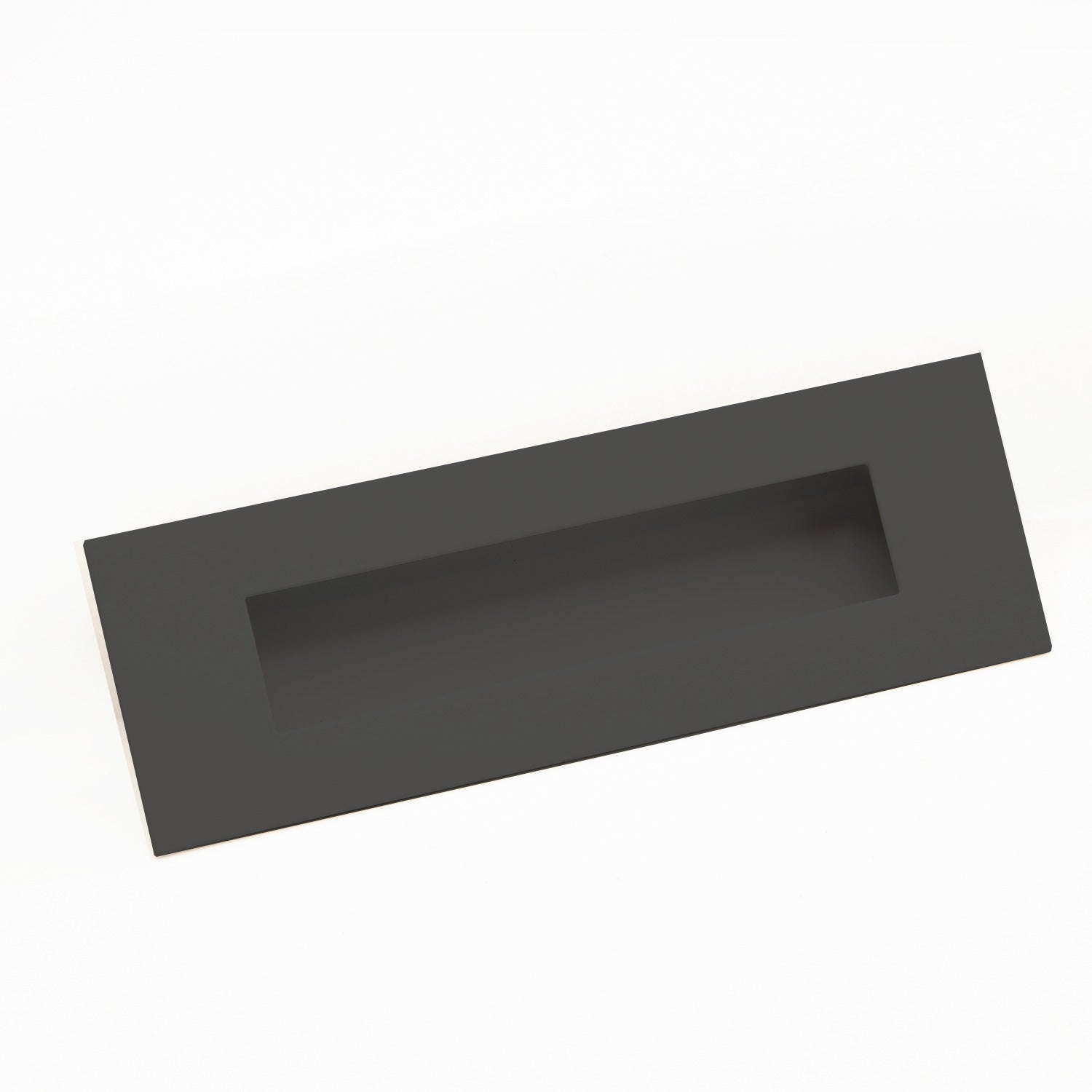 This rectangular flush inset handle is steel and finished in your matt white or black.