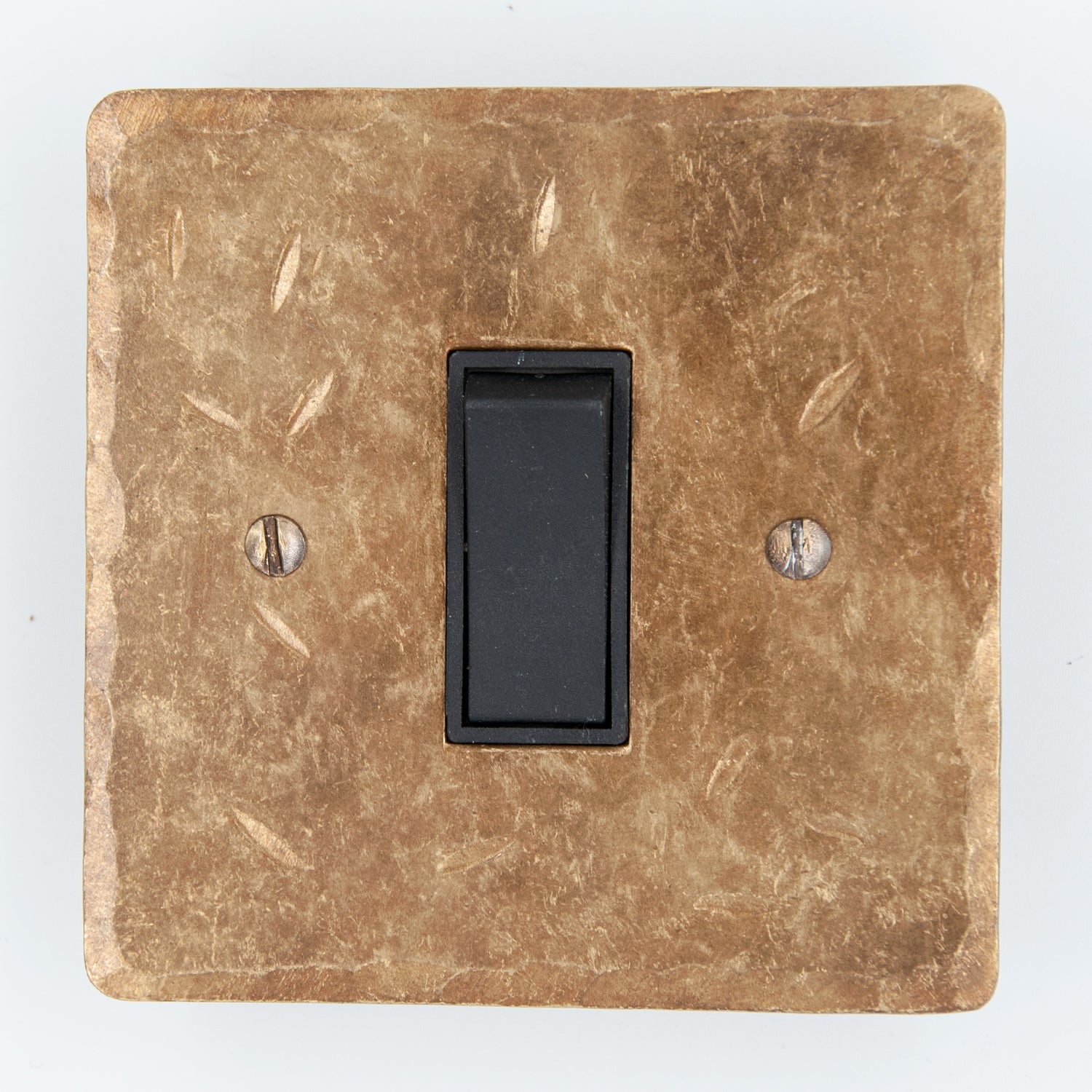Single Gang 2 Way Rocker Switch with Hammered Plate - Available in a range of finishes and styles