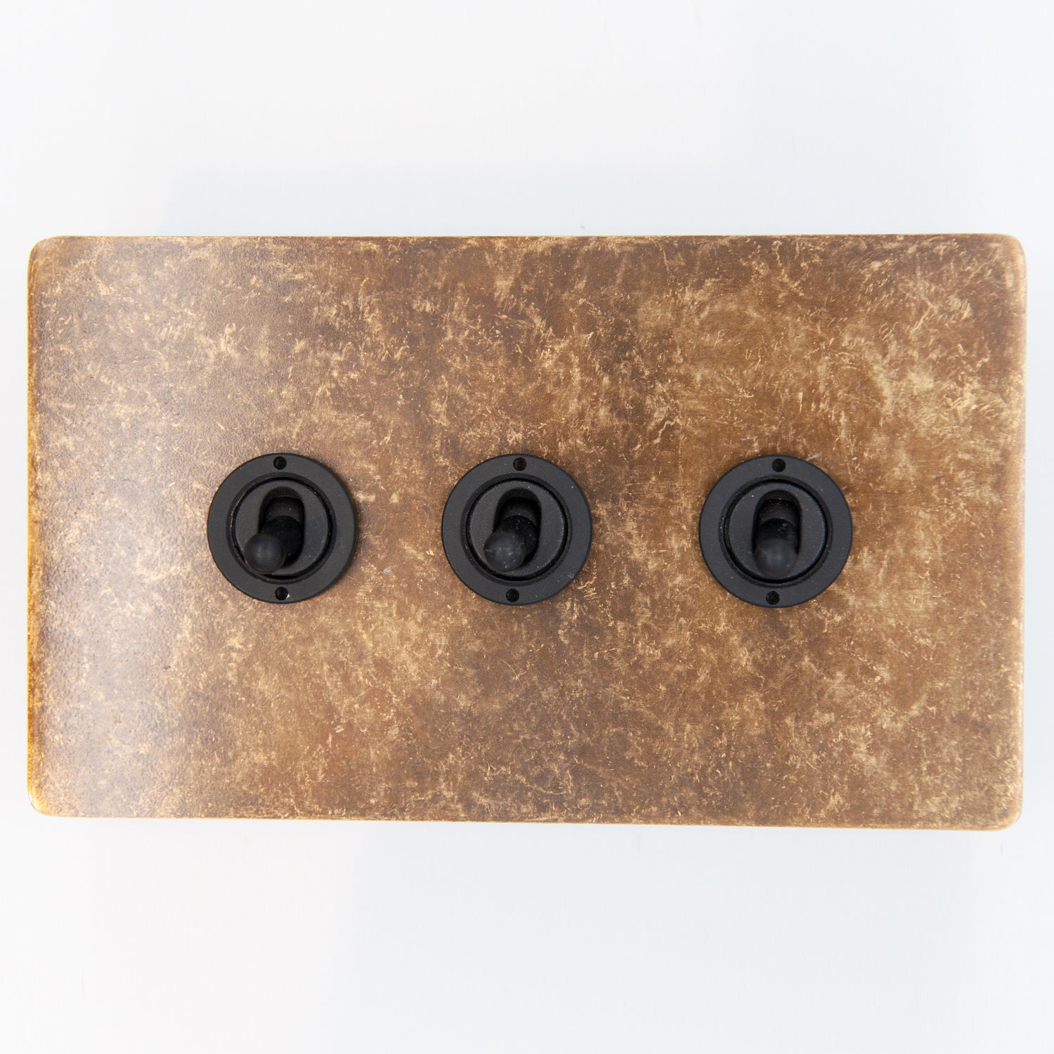 3 Gang Toggle Switch on double plate. Available in a variety of styles and finishes.